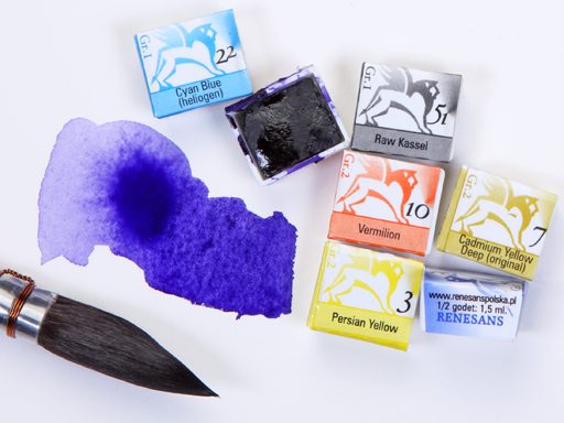 Renesans professional watercolors are crafted using traditional recipes and predominantly handmade processes to ensure the highest quality and purity. They use the purest pigments, including genuine Polish materials, combined with natural gum arabic and acacia honey as binders. These watercolors are finely ground and highly pigmented, providing bright, vibrant colors even when diluted with large amounts of water. The paints offer excellent lightfastness, keeping colors transparent and brilliant for long periods. With a range of 54 colors, Renesans watercolors are a respected choice among Polish artists and increasingly gaining global recognition for their quality and craftsmanship.